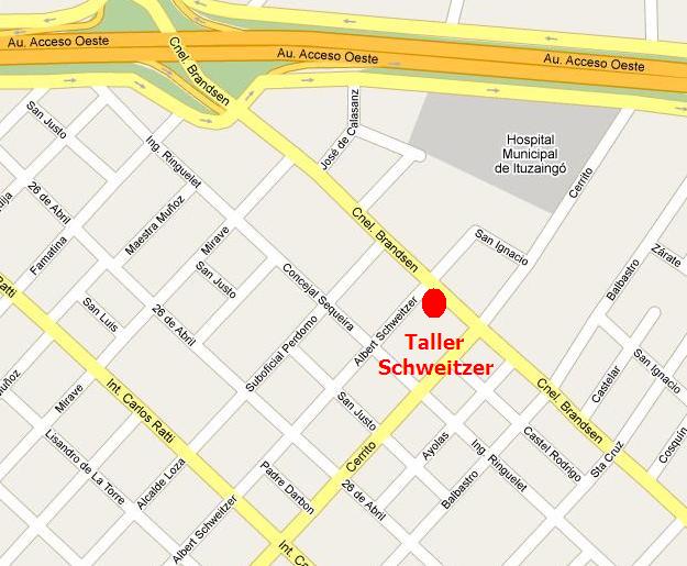 Taller Schweitzer: Albert Schweitzer 1412 (altura Av. Brandsen 3600) Villa León - Ituzaingó Provincia de Buenos Aires Tel/Fax:4621-8383 infotaller@tallerschweitzer.com.ar www.tallerschweitzer.com.ar